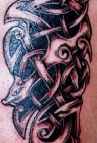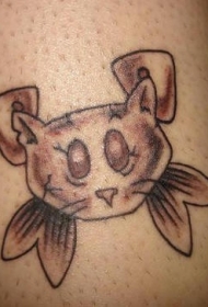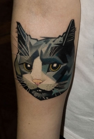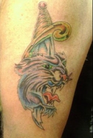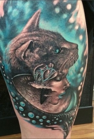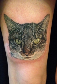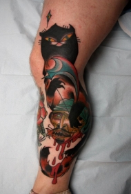 腿部old school彩色血腥人头与爬行猫纹身图案