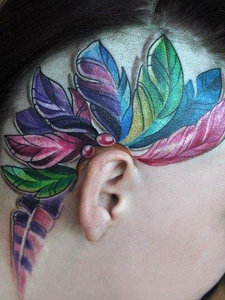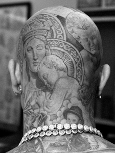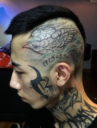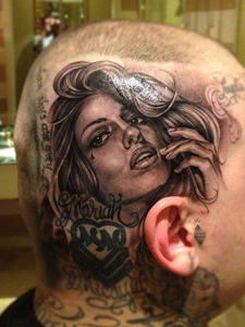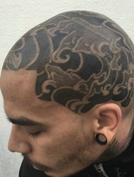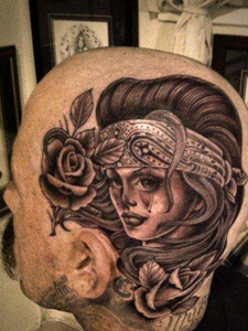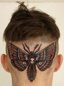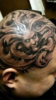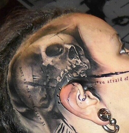 遮盖整个头部后面的3d骷髅纹身刺秦
