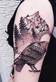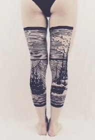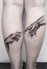 腿部的一组潮流个性的黑灰腿部纹身作品图