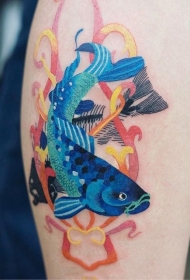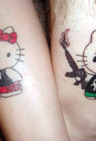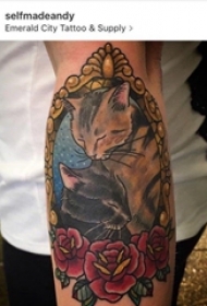 情侣腿部可爱的卡通猫咪彩色纹身图案