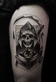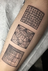腿部纹身黑白灰风格点刺纹身几何元素纹身正方形纹身图片