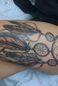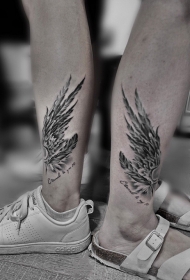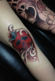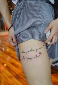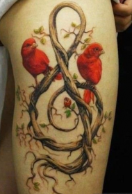 女人腿部潮流时尚的音符与小鸟藤蔓纹身图案