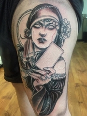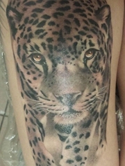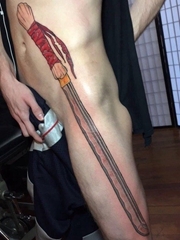 小腿上的影视明星Ragnar Lothbrok肖像图案纹身