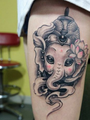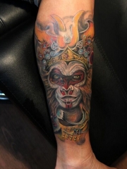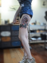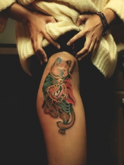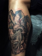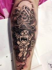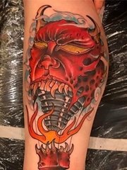 小腿上很漂亮的彩色恶魔风格热气球纹身