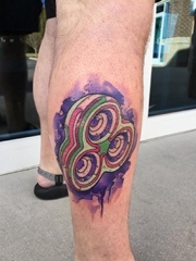 小腿上的水彩的bonnaroo音乐节Logo纹身