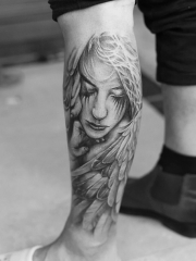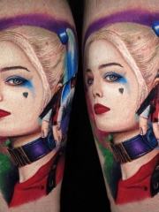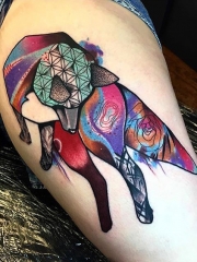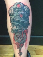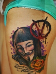 大腿浓墨重彩v字仇杀队玫瑰肖像纹身图案