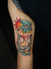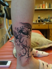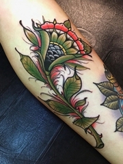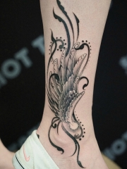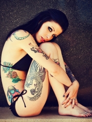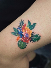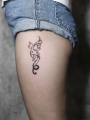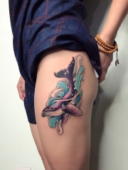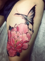 大腿牡丹花与蝴蝶彩绘纹身图案