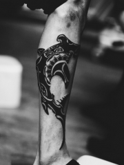 小腿个性鲨鱼图腾纹身图片