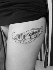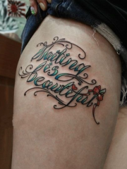 大腿清新的花体英文字母纹身图案