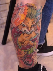 腿部变化莫测,,三头六臂的孙大圣纹身