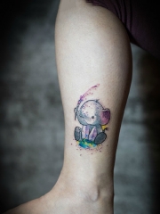 腿部彩绘可爱小象纹身图案
