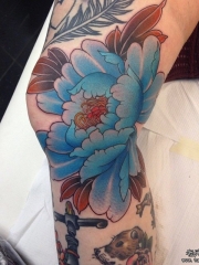 腿部传统牡丹花纹身图案