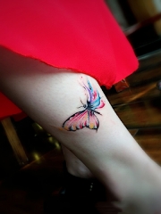 小腿唯美蝴蝶水彩纹身图案