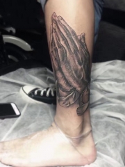 小腿上的祈祷之手纹身图案