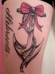 大腿漂亮的船锚蝴蝶结纹身图案