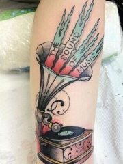 美女小腿留声机彩色纹身图案