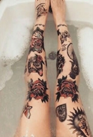 school彩色--一组国外优秀的腿部彩色school纹身图案作品