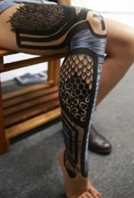 超黑色的图腾点刺大黑腿纹身图案欣赏