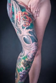 传统花腿纹身--18张传统风格的大花腿纹身图案作品