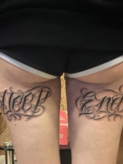 大腿部时尚花体英文纹身图案
