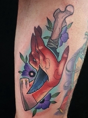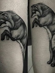 腿上的黑灰色站立的狐狸纹身图片