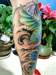 包小腿惊艳的彩绘鲤鱼纹身图案