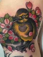 腿部鸭子花卉纹身图案