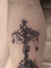 腿部超酷的骷髅天秤座刺青图案