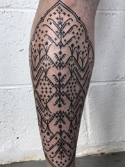 小腿上个性的密集的黑色图腾纹身图片