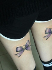 女生腿部时尚的蝴蝶结彩绘纹身图案