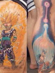 腿部好看逼真的七龙珠卡通人物纹身图案