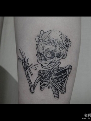 长腿美女花臂腿部彩绘骷髅翅膀纹身诱惑