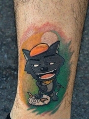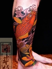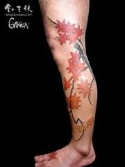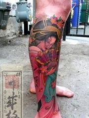腿上彩色的日本艺妓纹身图案作品欣赏