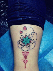 潮流雅观的靓女腿部彩色花蕊爱心纹身
