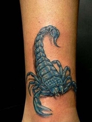 两张腿颈部的蓝黑蝎子纹身图案欣赏