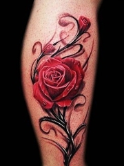 小腿侧部漂亮的玫瑰纹身图片欣赏