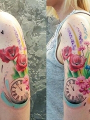 手臂和腿部上的各种时钟纹身图案