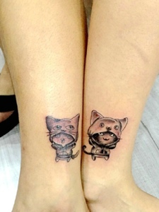 裸脚处一对可爱迷你小猫情侣纹身图案