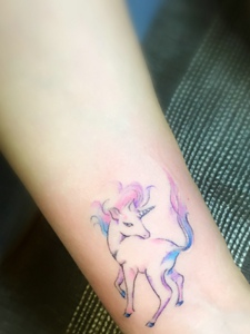 腿部一匹俊俏的水彩小马纹身图案