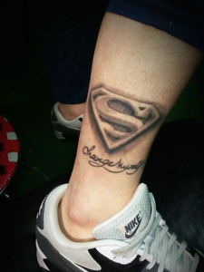 运动男士小腿处抢眼的纹身图案