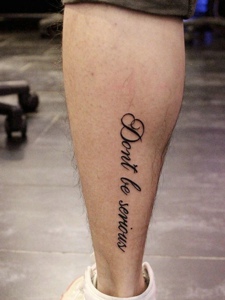 男士小腿外侧时尚简单英文纹身图案
