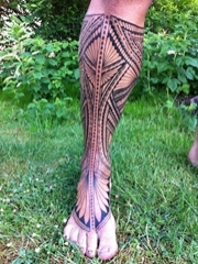 小腿部满腿的图腾纹身