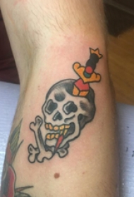 骷髅纹身 男生腿上骷髅和匕首纹身图片