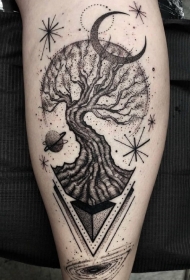 一组适合小腿和手臂的黑灰点刺纹身图案作品欣赏