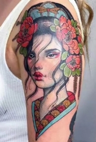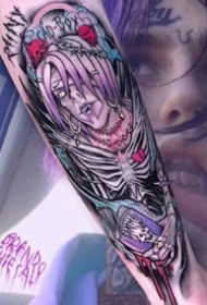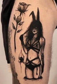 女孩人物纹身图案 女生腿上人物和动物纹身图片