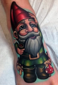 卡通老人纹身图片_10腿部张矮小可爱的带红帽子的老人卡通纹身图案