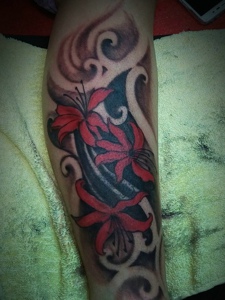 时尚惊艳的腿部彼岸花纹身图片