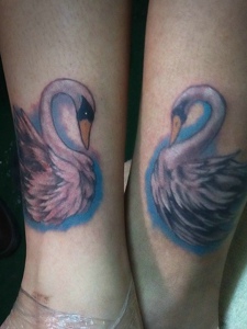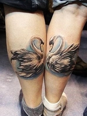 情侣腿上天鹅成对刺青图案