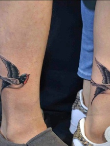 裸脚一对情侣小燕子纹身图案很浪漫