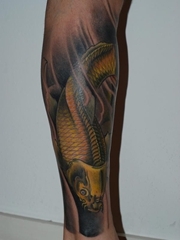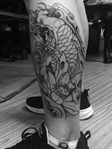 莲花与鲤鱼结合的腿部纹身图案